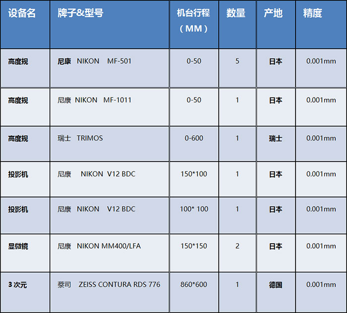 檢測設(shè)備清單
